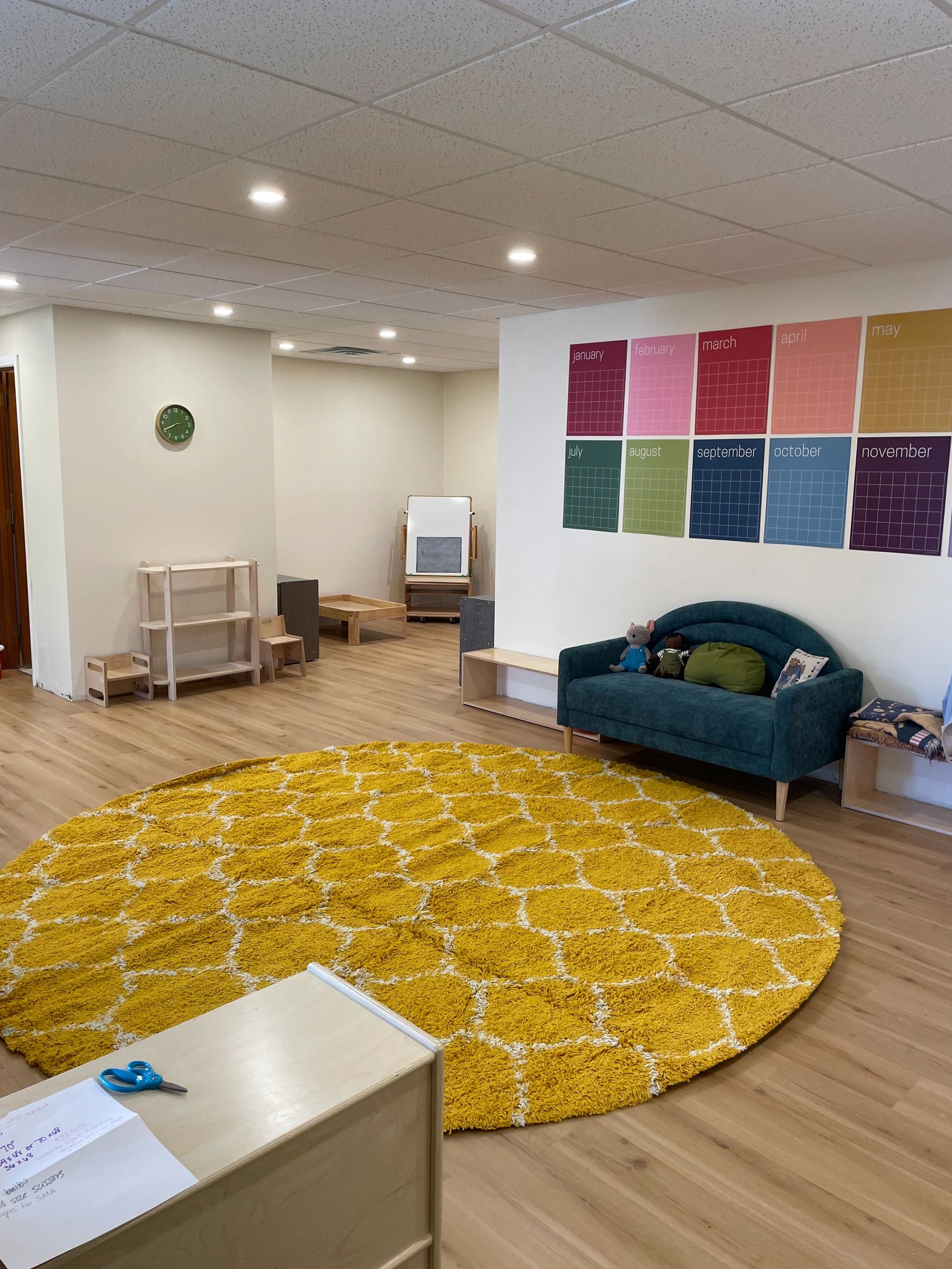 Each element of the space—furniture, materials, and layout—is intentionally chosen to encourage movement, coordination, language, independence, self-discipline, and early cognitive growth.